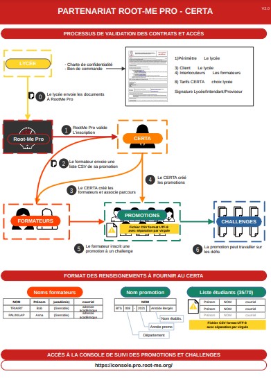 La version 2.0 de ce partenariat commence à partir de janvier 2023, pour un an : les inscriptions doivent être validées auprès de Root-Me Pro avant le 15 décembre, afin de permettre l'enregistrement des équipes et des formateurs.
